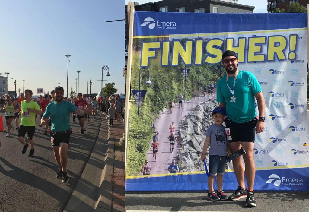 Pour les gros coups de cœur à Saint John, on repassera. Ce fut pour nous une ville maritime qui n’était pas tant le gros hit du voyage. Le gros facteur de bonheur fut plutôt Jean-Mich qui a couru sont troisième demi-marathon en un temps record. C’est avec beaucoup de fierté que moi et fiston l’avons accueilli à son arrivée. Une course qu’il a décrite comme très surprenante au niveau de l’élévation et très trippante au niveau de la vue du parcours.