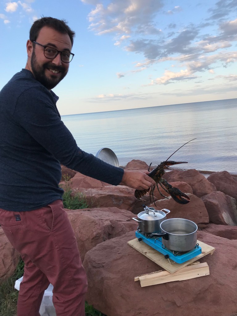 Les yeux remplis de belles images de plages rouges nous avons finalement repris la route pour quitter la mer salée de PEI, mais pas sans consommer le homard frais en repas et les pommes de terre tellement réputées de l’île.