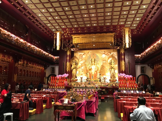 1- Chinatown : la population chinoise compose une très grande partie de la population de Singapour, visiter le Chinatown était donc un incontournable. Nous avons visité deux temples, le Buddha Tooth Relic et le Sri Marianmman lors de cette balade. Nous avons aussi pris le temps de s’arrêter un peu partout afin de découvrir les traditions culinaires parfois très surprenantes. Disons qu’Alexis nous a posé beaucoup de questions :). Pour le dîner, nous avions décidé d’arrêter au Maxwell Food Center afin de déguster la culture locale. Un endroit typique Chinois, sans prétention avec plus de 100 petits kiosques de bouffe Chinoise de toute sorte (attention au cœur sensible). Le classique « Rice Chicken » étoilé Michelin avait au moins une heure d’attente alors après avoir observé le gens manger nous avons opté pour son voisin. C’était franchement délicieux. 5$ pour un repas complet. Un test fort pour l’estomac fragile de nord-américain. Test qui s’est bien déroulé accompagné d’une grosse Tiger (Bière Asiatique typique) servi dans des bocks bien glacés.