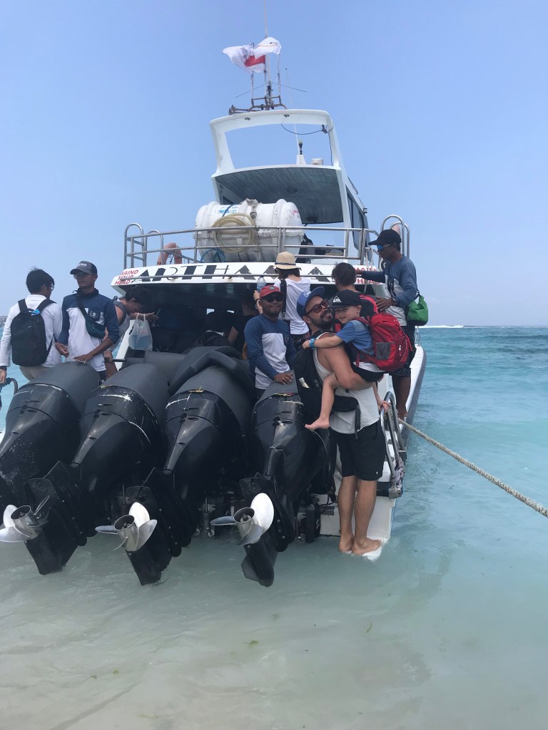 Il est certain que les gens vivent du tourisme presque à 90 %. On s’attend donc parfois à être un peu harcelés lorsque l’on passe devant un commerce et qu’on ne s’y arrête pas. Eh bien, oui, c’est le cas. Par contre, on n’a senti que les Balinais veulent t’attirer dans leur chez eux et non juste te vendre des biens pour te vendre des biens. Ils le font avec un certain humour qui nous donne envie de leur sourire. Et lorsqu’on leur répond « No thanks » comme Alexis a si bien appris à le dire, ils nous rendent notre sourire et passent au suivant sans faire de « chi chi ». Nous avons embarqué à bord d’un véhicule ou notre ami nous a fait faire le tour de l’île. À tous moment il prenait soin de nos choses et nous recommandait des endroits ou acheter de l’eau et manger sans se faire arnaquer. On a loué des SUP pour se promener dans la mangrove et on pu laisser nos chaussures sur le rivage en toute confiance et la dame s’est bien garder de nous rassurer, et cela, en coupant de moitié le prix de location des « paddle board ». On a aussi fait une crevaison sur le scooter. Totalement prix de panique et pensant que cela allait nous coûter cher nous avons été dirigé par une Balinaise dans un garage. Sans poser de question, le proprio, qui parlait très peu anglais, a demandé à un mécanicien de réparer le tout. On se demandait toujours comment cela allait nous coûter. Eh bien 0$, « free mister ». Il avait entre-temps téléphoné au locateur de moto et s’était arranger avec lui. Surprise un beau pneu neuf pour continuer notre chemin. Le plus drôle c’est qu’il nous a même offert un lift jusqu’à une autre ville sur l’île de Bali pour rencontrer sa famille, « for free mister ».