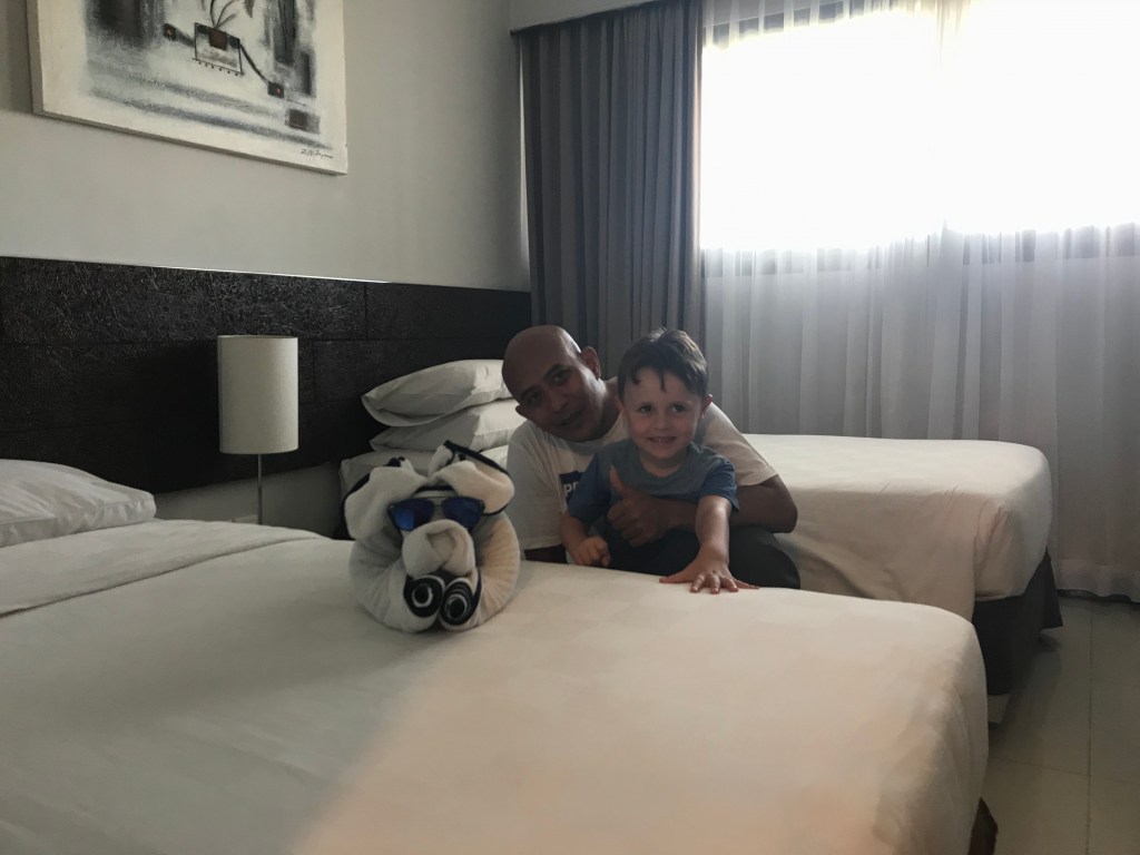 On vous l’a dit plutôt les Balinais capote sur les enfants. Il aime leur parler, leur sourire, les coller. On a même du quelques fois expliquer à Alexis pourquoi les gens était si chaleureux. Au départ, il était un peu nerveux et avait tendance à reculer. Par contre à la fin, c’est lui qui se dirigeait vers eux pour leur rendre l’appareil. Alexis a reçu une tonne de cadeau pour souligner son anniversaire. Des gâteaux pas possibles et on ne comprenait pas d’où ils venaient tellement ils étaient beaux. D’un autre côté, nous avons trouvé qu’il y avait peu d’activité pour les enfants. Même les enfants des locaux jouent souvent sur leur iPhone, et cela, dès un très jeune âge. Cela nous a un peu renversés. Comme si le fléau techno que nous vivons dans nos pays occidentaux touchait encore plus fortement ce pays. Attention lire ici qu’on ne capote pas là-dessus Alexis à son propre Ipad. Mais nous avons eu l’impression que souvent lorsqu’Alexis voulait jouer avec eux, il préférait souvent l’application YouTube.