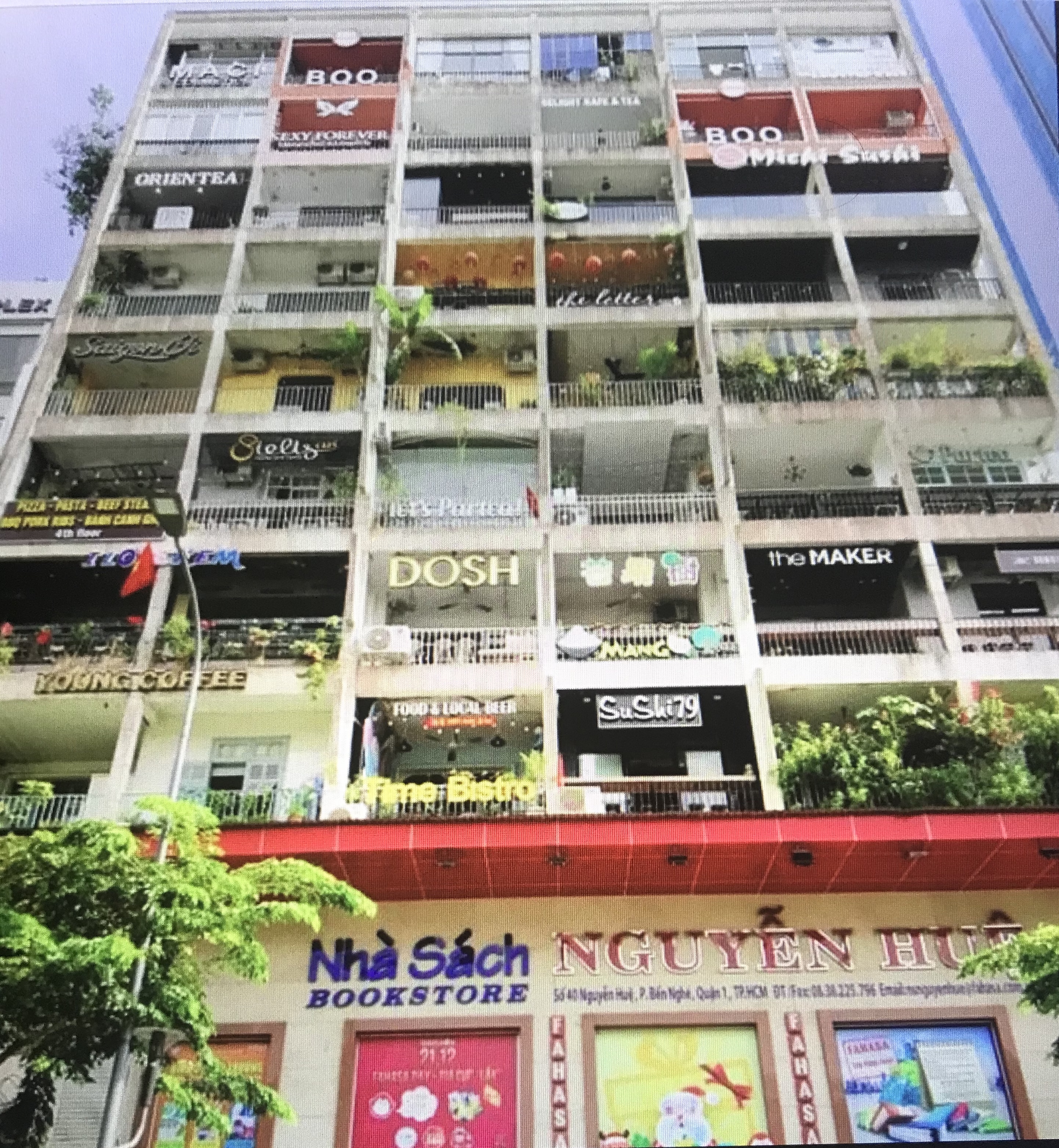 2 Le district 1: L’ensemble du District 1 est très beau, des bâtiments coloniaux partout. Que ce soit des hôtels ou des bâtiments gouvernementaux, l’ensemble des buildings vous fera lever les yeux partout. Vous retrouverez même un pont piétonnier reliant le district 1 au district 4 dont l’architecte est nul autre que Gustave Eiffel, construit quelques années avant la célèbre tour Eiffel. Marchez sur la rue piétonne (ou presque!) Nguyen Hue et vous pourrez voir le palais municipal, la statue de Hô Chi Minh et le fameux « The cafe appartment ». Ce bâtiment étrange était à l’époque de la guerre un endroit pour héberger les hauts gradés américains. Suivant la fin de la guerre, les appartements sont devenus des logements sociaux et pour arrondir les fins de mois les locataires y ont ouvert des restaurants. Aujourd’hui, ils sont toujours sous l’avis d’éviction, mais le truc est tellement bien fait que c’est toujours ouvert. Les prix sont chers, mais ça vaut une visite, au pire seulement pour voir ce lieu mythique. Les escaliers du bâtiment parlent d’eux-mêmes J. Pour ceux voyageant avec les enfants, il y a même un McDonald sur cette rue avec une très belle terrasse (Alexis était très content.). Nous avons aussi découvert une belle micro-brasserie appelée « Pasteur Brewies ». Les prix sont beaucoup plus chers, mais l’ambiance est super cool et la bière excellente… Des fois, il faut se payer un luxe non ? !! Vous trouverez aussi la Bitexo Tower qui a longtemps été le plus haut building de HCMC, il y a un super skydeck au 60e étage ainsi qu’un bar et un restaurant. Malheureusement, faute de budget, nous n’y avons pas été, mais on imagine que la vue est magnifique surtout le soir. Dans cette tour, il y a aussi un cinéma très abordable avec des films en anglais, on en a donc profité pour aller voir Frozen 2 avec Alexis qui était très content de voir Olaf !