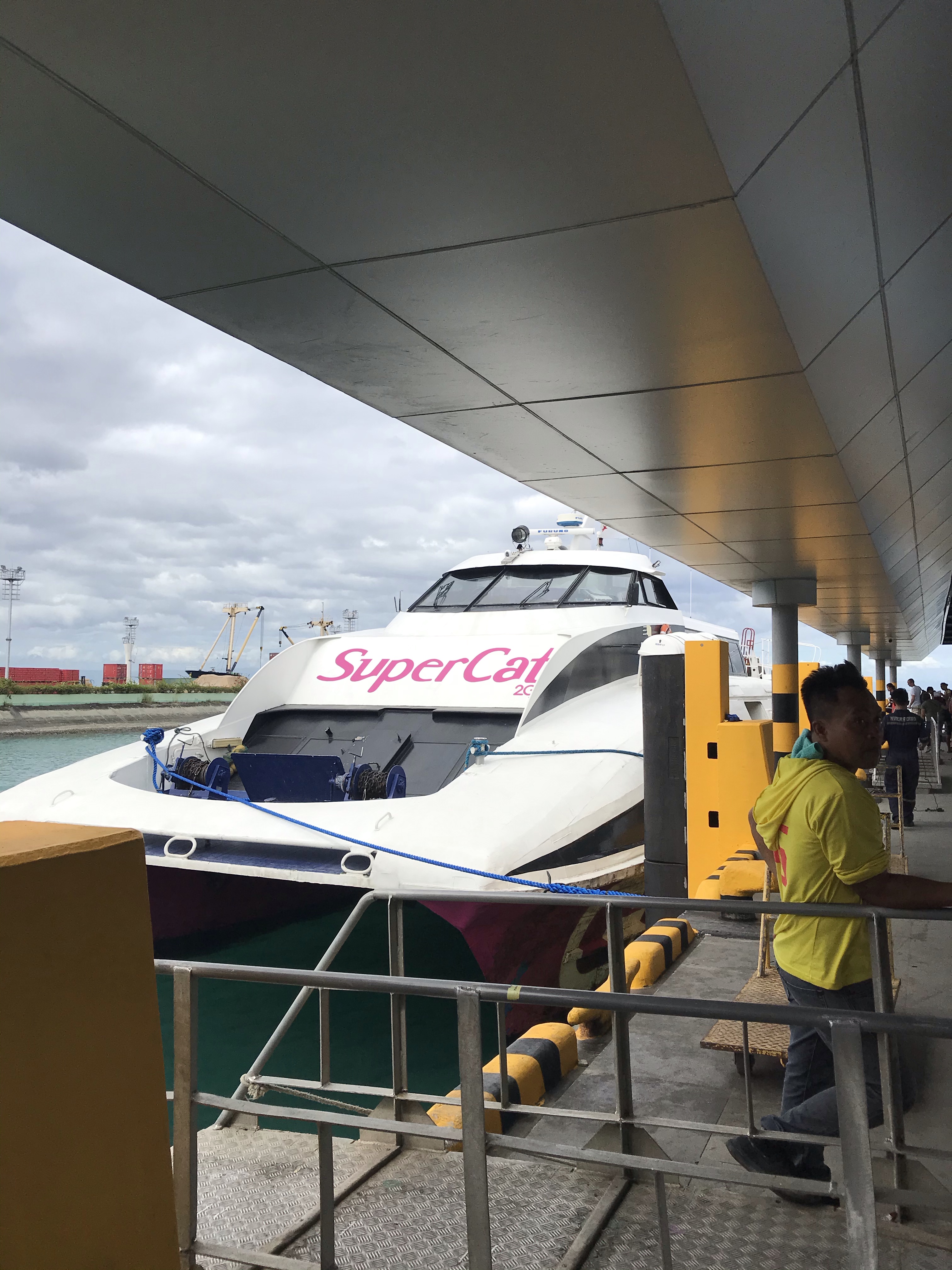 On quitte l’île via le port de Tagbilaran en direction de Cebu. Cette fois avec la compagnie SuperCat ferry. Le trajet est de 2 heures aussi, mais beaucoup plus confortable. Nous avions acheté nos billets en avance et encore un bon choix, car la file d’attente interminable pour sauver quelques pesos… De Panglao, il faut prévoir environ 25 minutes de tricycle pour rejoindre le port de Tagbilaran.