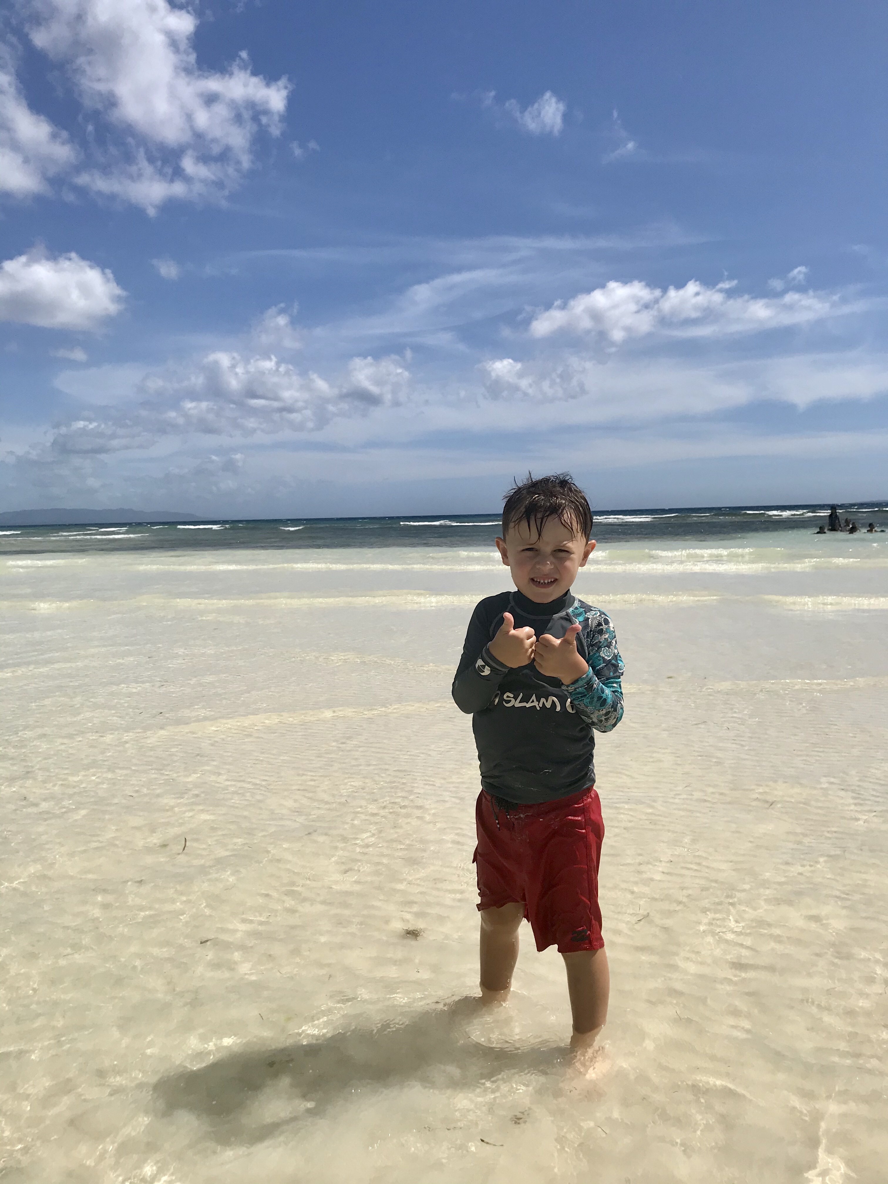 2 Dumaluan Beach (en Scooter) : Superbe Plage situé sur la côte de Panglao, accessible en scooter, c’est l’endroit idéal pour passer la journée en famille dans un environnement très typique. Loin des resorts et des bars branchés d’Alona, nous avons adoré cette superbe plage avec les locaux. Il y a des petits beach bar vraiment typique et des options locale pour manger. À marée basse, on peut courir sur les bancs de sable blanc les pieds dans l’eau. Les jeunes filipino parles pour la plupart très bien Anglais, on a donc adoré jouer avec Alexis et les autres enfants dans l’eau…Un beau moment avec les locaux et pour Alexis. On recommande vivement cet endroit si vous êtes à la recherche d’une expérience plus authentique avec quelques installations acceptable pour les touristes. Nous y sommes aussi sentis en sécurité comparativement à Bikini Public Beach.